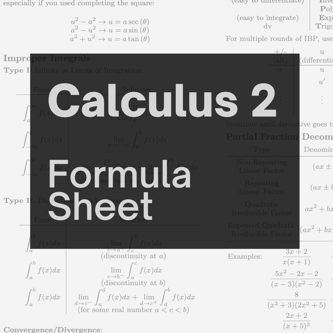 Enter your details below to get access to the Calculus 2 Formula Sheet!